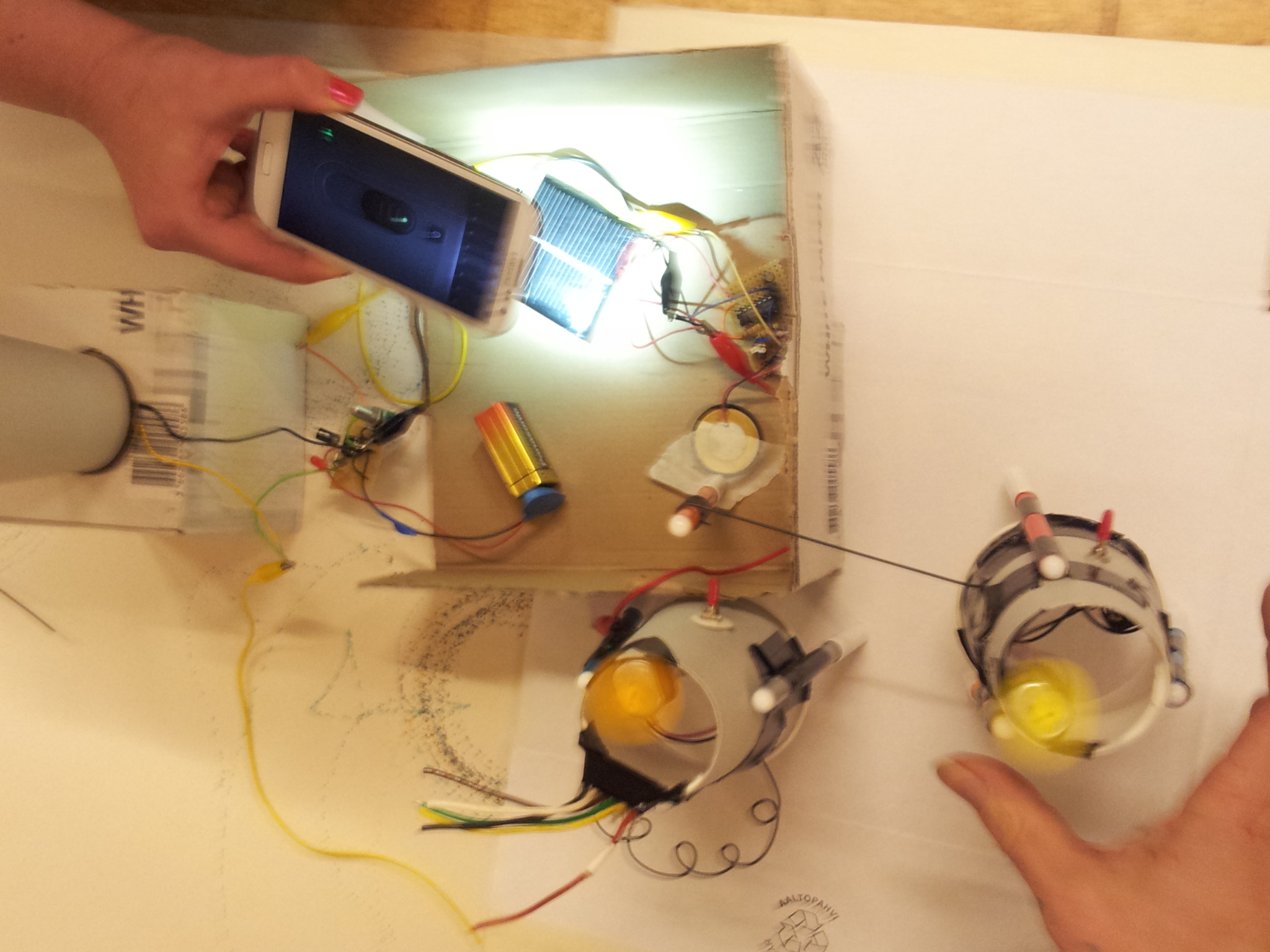 (Together with Tomi Dufva) MaxMSP + Arduino, Interactive art course, MUU, Helsinki, Finland 3-5/2011